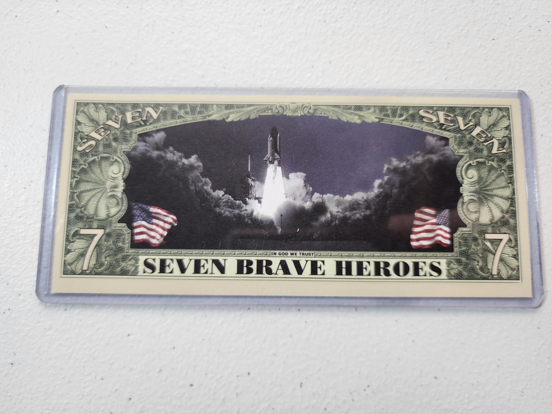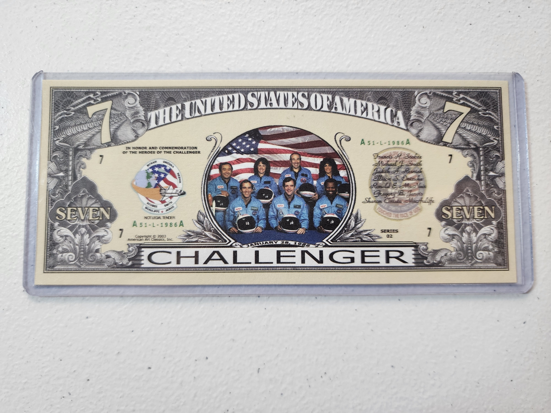 Space Shuttle Challenger Crew Commemorative $7 Bill - Mint Condition in Protective Holder