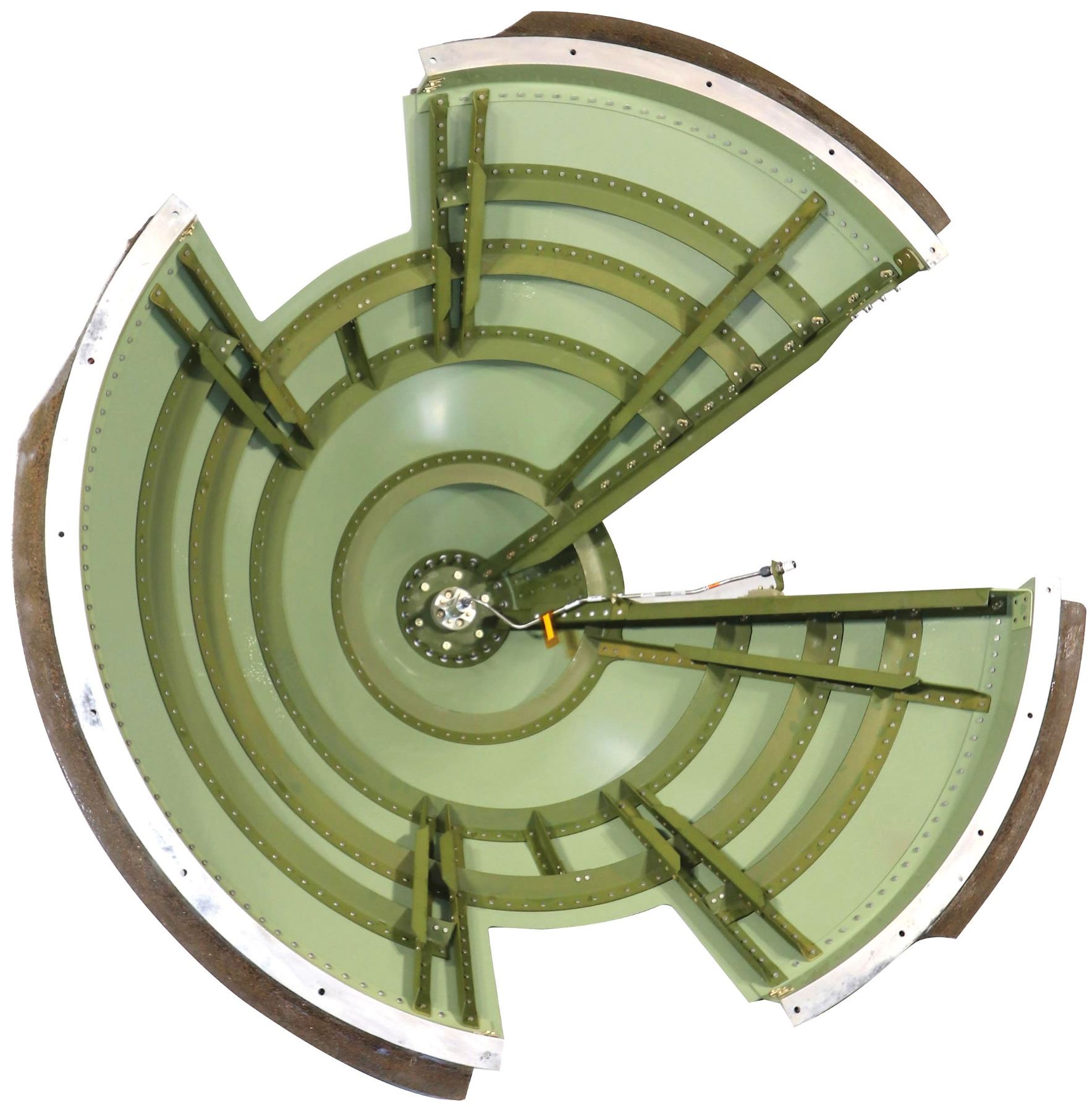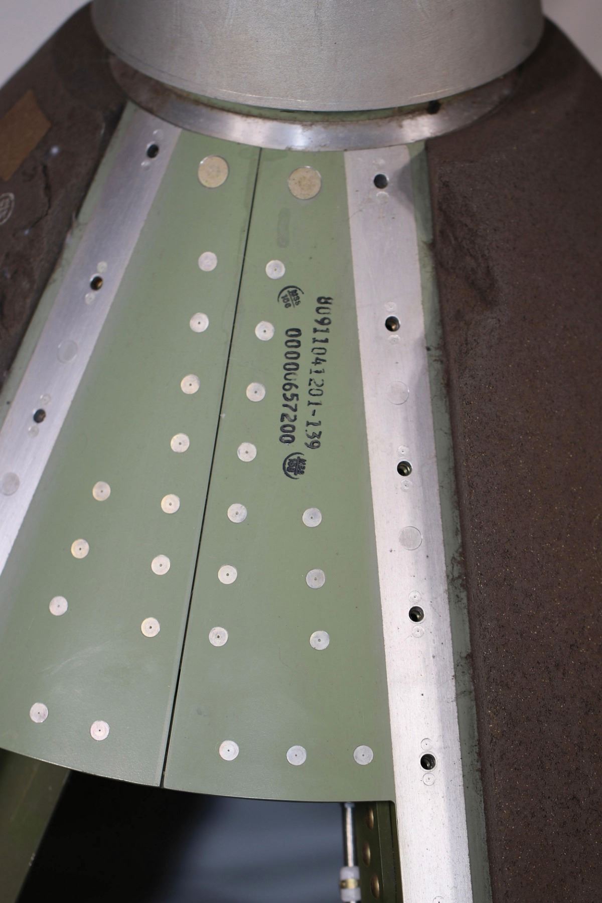 This variant of the nose cone is of the type employed during early flights of Shuttle Transport System (STS) which used the heavier Standard Weight Tank (SWT) and is fabricated from aluminum with an ablative liner to protect the structure from thermal loads (frictional heating) during ascent; NASA subsequently developed lighter weight tanks and modified the nose cone to carbon phenolic exterior construction. Diameter is approximately 58?, with a height of 43?, and an estimated weight of 65 pounds.
