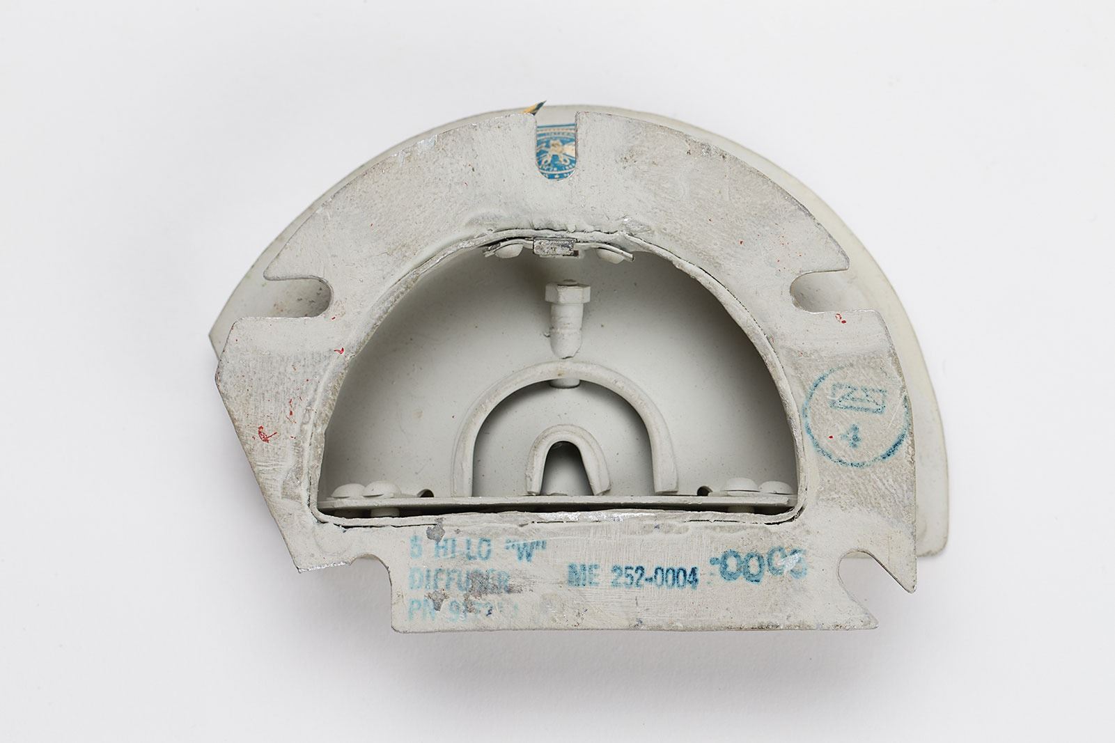 Light gray Space Shuttle Main Display Panel Side Air Vent Diffuser, measuring 4.75? x 3.5? x 1?, marked on the reverse with part numbers: "5 Hi Lo 'W,' Diffuser, ME 252-0004-0005." In fine condition.