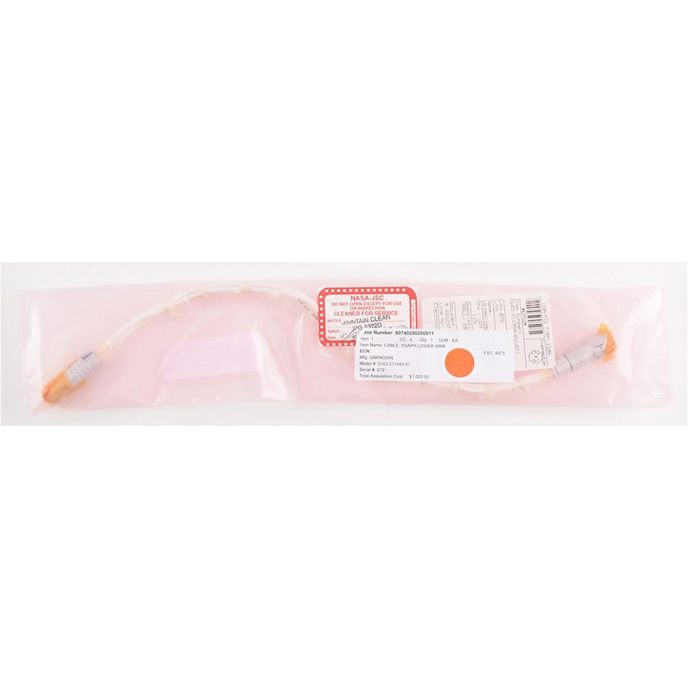 Space Shuttle Space Suit Power Harness Assembly (Lower Arm), approximately 16˝ long, comprising a white cable with connectors at each end, labeled as "P/N 0103-211984-01-07, S/N 079." Sealed in its original NASA-JSC cleaning bag with affixed deaccession label. In fine condition.