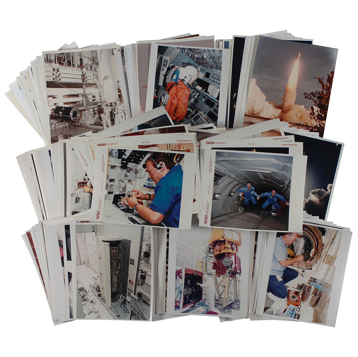 Collection of approximately 300 glossy NASA photos depicting various aspects of the shuttle program dated between the 1980s and 1990s, 8 x 10 and 10 x 8, many color, most with NASA stamps and descriptions to reverse. Includes a few uncommon ‘red-numbered’ photos. In overall fine condition.