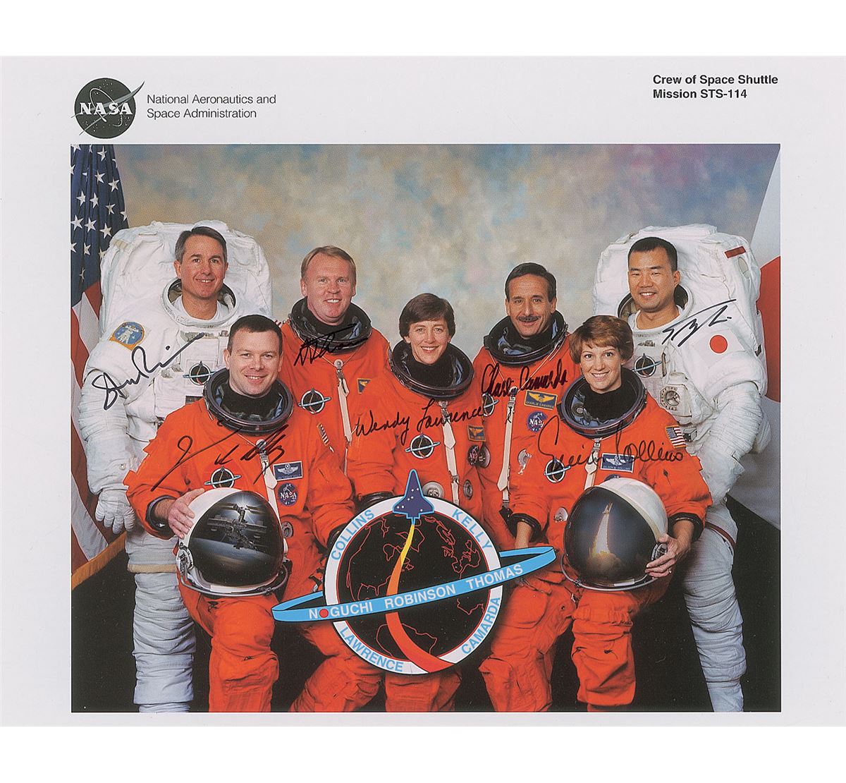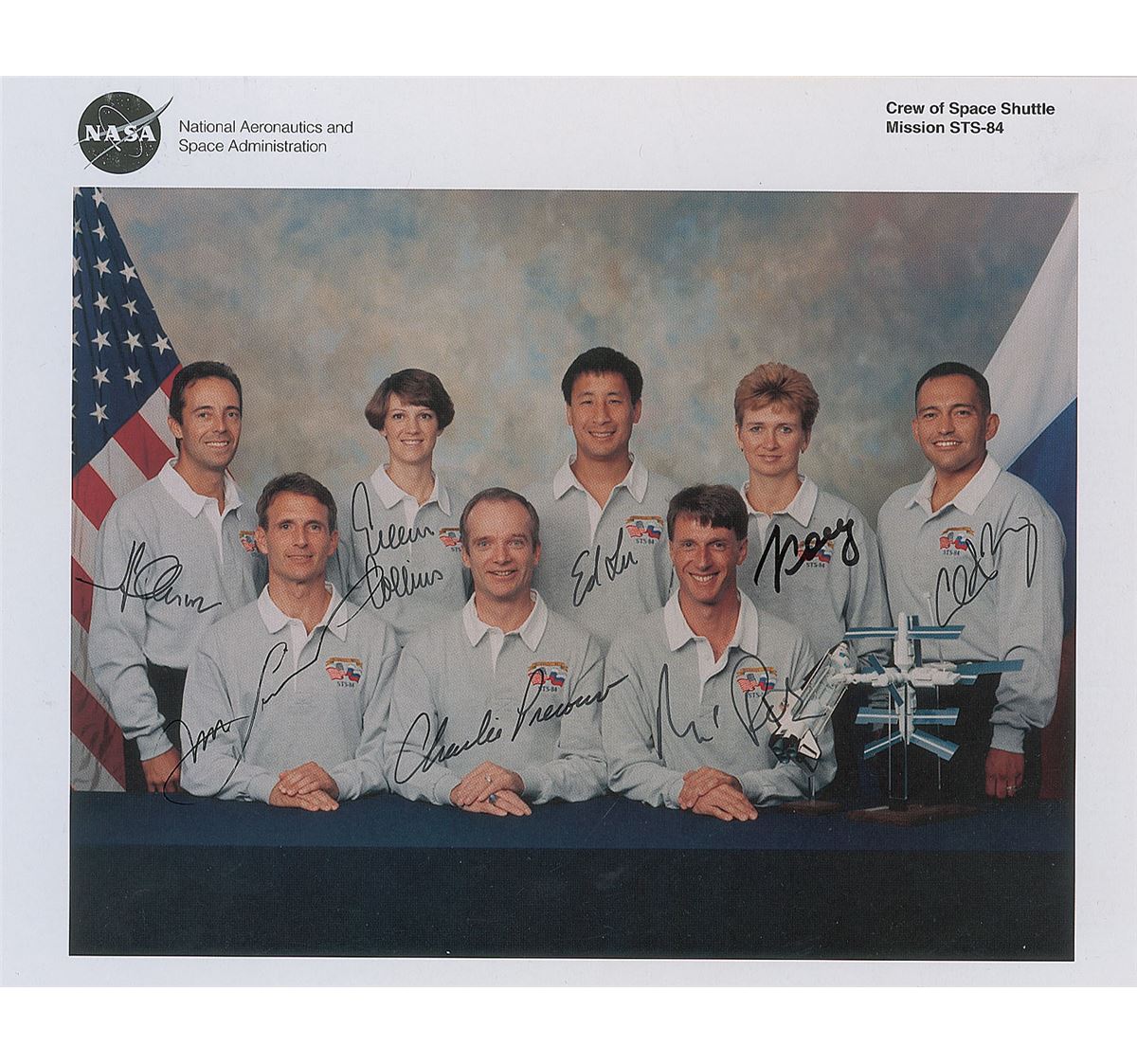 Collection of four official 10 x 8 NASA lithographs of various Space Shuttle crews, each signed in ink or black felt tip by the full crew. Missions are: STS-50, STS-84, STS-88, and STS-114. In overall fine condition.