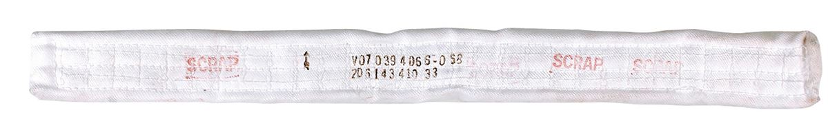 Available to US bidders only. Multi-Layer Insulation (MLI) Blanket with Beta cloth on one side and gold foil on the other, 30 x 2.5 x 1, part number “V070394066-068, 20614341033.” The blanket bears multiple “Scrap” stamps on the top and is painted dark red on the bottom. In fine condition, with scattered soiling and light wear.