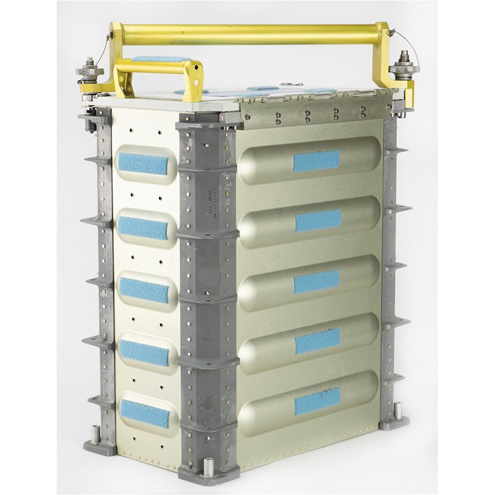 Attested to as flown by Astrotech—Spacehab module storage locker, 18.5 x 11.5 x 25.75, with the McDonnell Douglas inventory tag affixed to side reading: "Spacehab Fleet Inventory Item. SHFI. No. 300007A, Serial No. MD 015, Nomenclature: Locker Assembly." The locker also bears several stamped part numbers, such as "900267-1 REV J, SN MD 015" and "9060266-1, SN MD 015." The front of the storage is marked as "FC05." With the exception of the underside, all other sides bear affixed swatches of female loop Velcro. In fine condition, with expected wear from use. The Spacehab was a pressurized, mixed-cargo carrier for transporting cargo and experiment hardware in the Space Shuttle cargo bay.