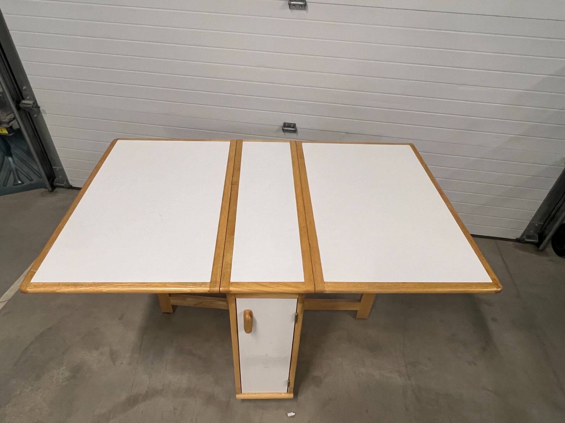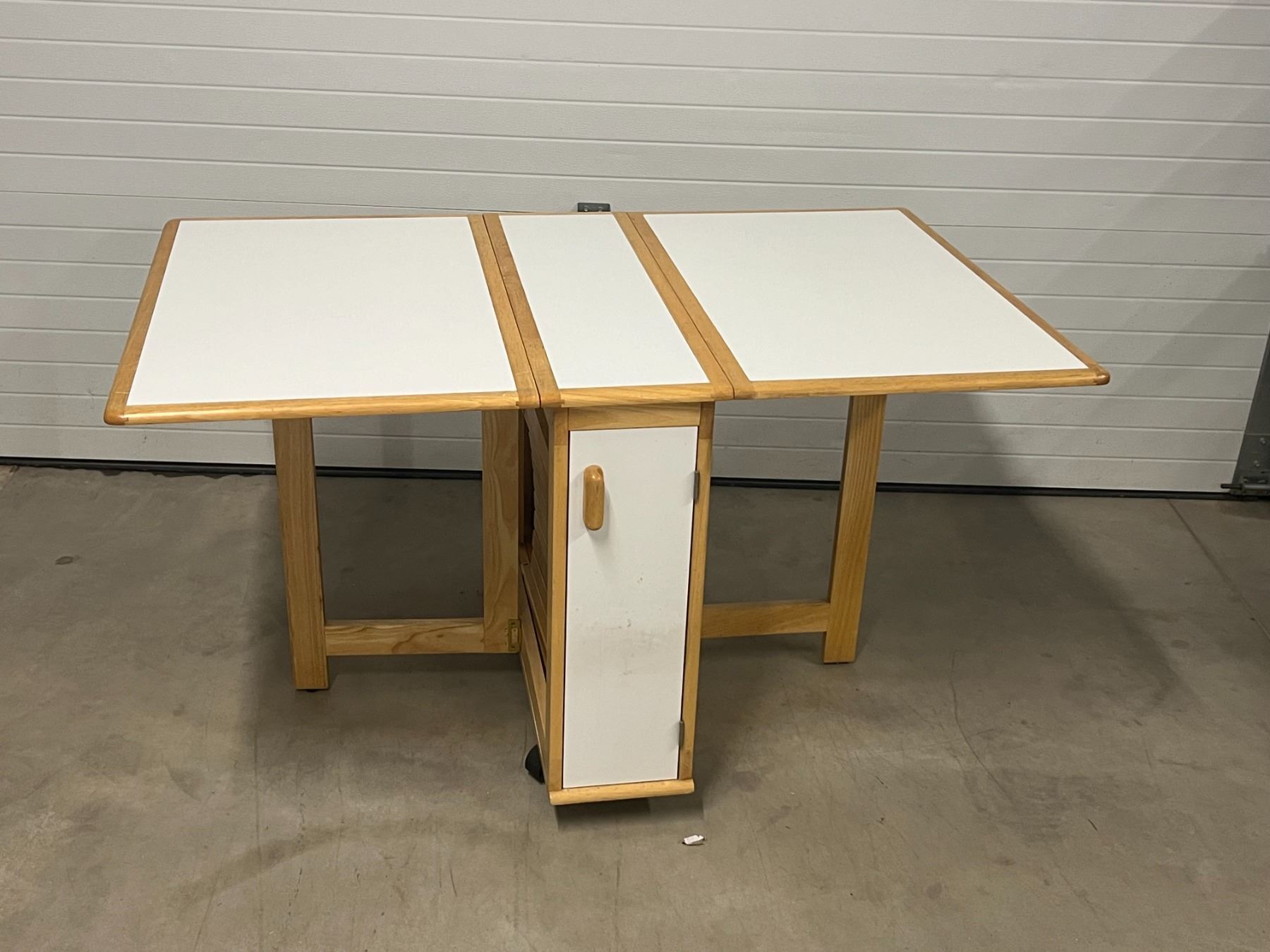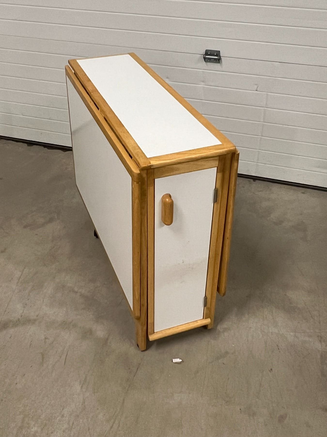 Extra Holiday Seating? Super Functional set in good overall condition. Approx: 34x11.5" & 29"T (two 21.5" Fold up leaves) Spacesaver Dining Set - Drop Leaf Table and 4 Chairs