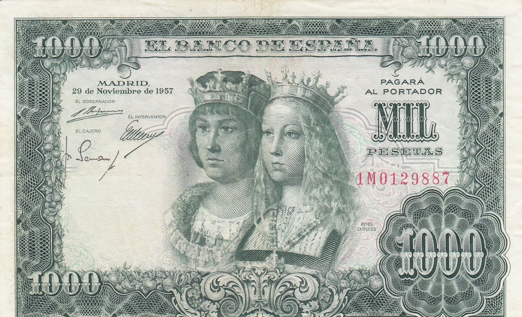 Spain, 1.000 Pesetas, 1957, XF, p149abr/serial number: 1M 0129887