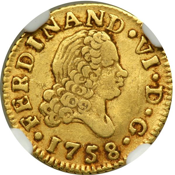 Spain. ½ Escudo, 1758-JB (Madrid). Fr-274; KM-378. Fernando VI. Bust. Reverse: Arms. NGC graded VF-25.