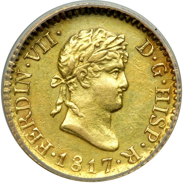 Spain. ½ Escudo, 1817GJ (Madrid). Fr-317; KM-492. Ferdinand VII. ANACS graded AU-50, Details (Cleaned).