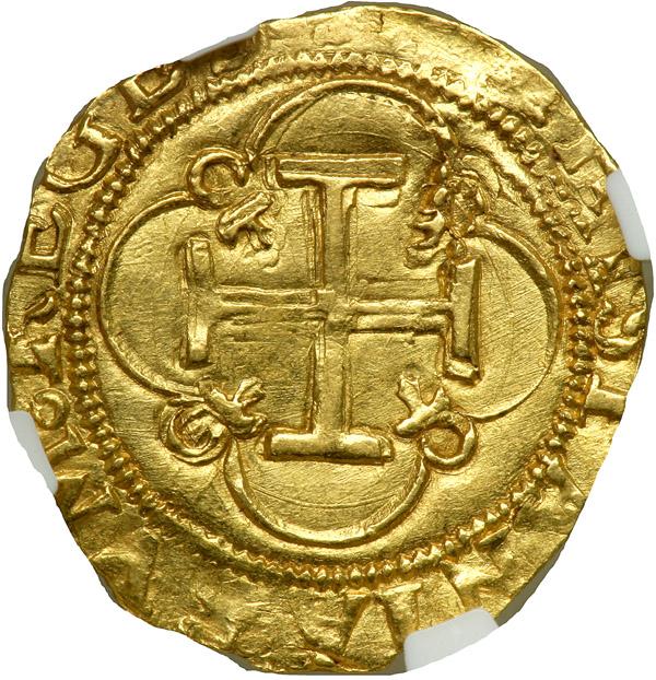 Spain. 1 Escudo, ND (Seville). Fr-153; Cayon-3148. Carlos I and Juana, 1516-1556. Crowned arms. Reverse: Cross. NGC graded AU-58.