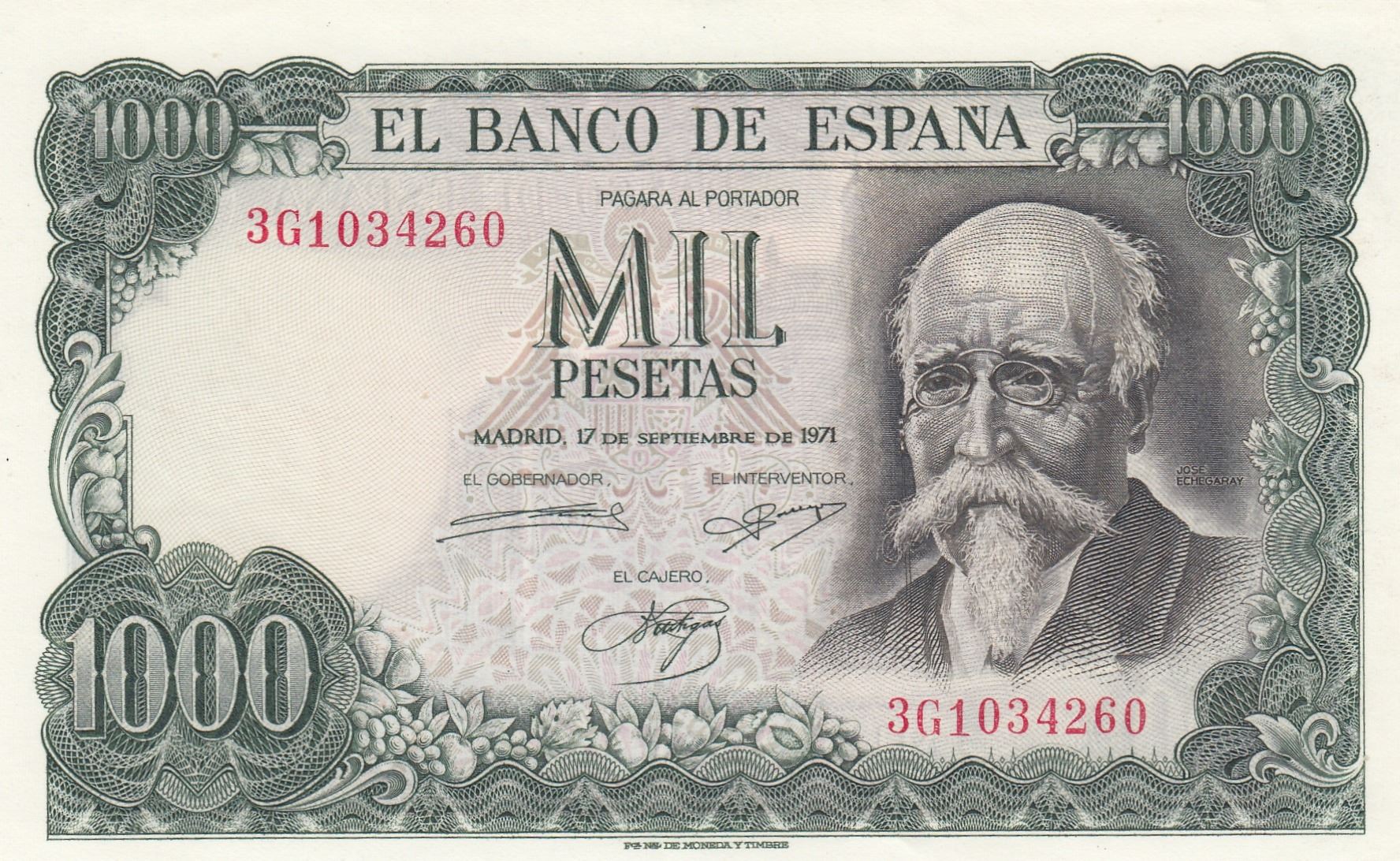 Spain, 1000 Pesetas, 1971, UNC, p154br/serial number: 3G1034260