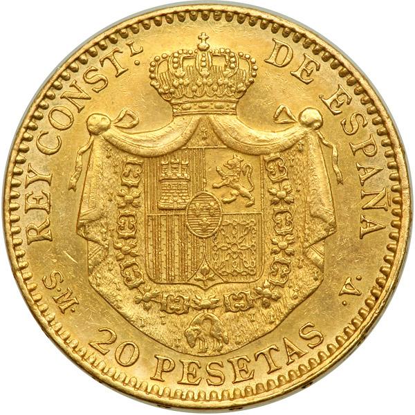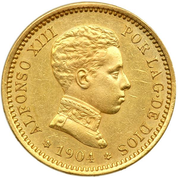 Spain. 20 Pesetas, 1904 (04) SM-V. NGC AU