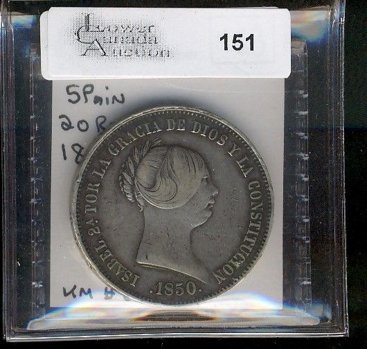 Spain; 20 Reales 1850 VF-20 with 6 pointed star mint mark, KM #593,2.