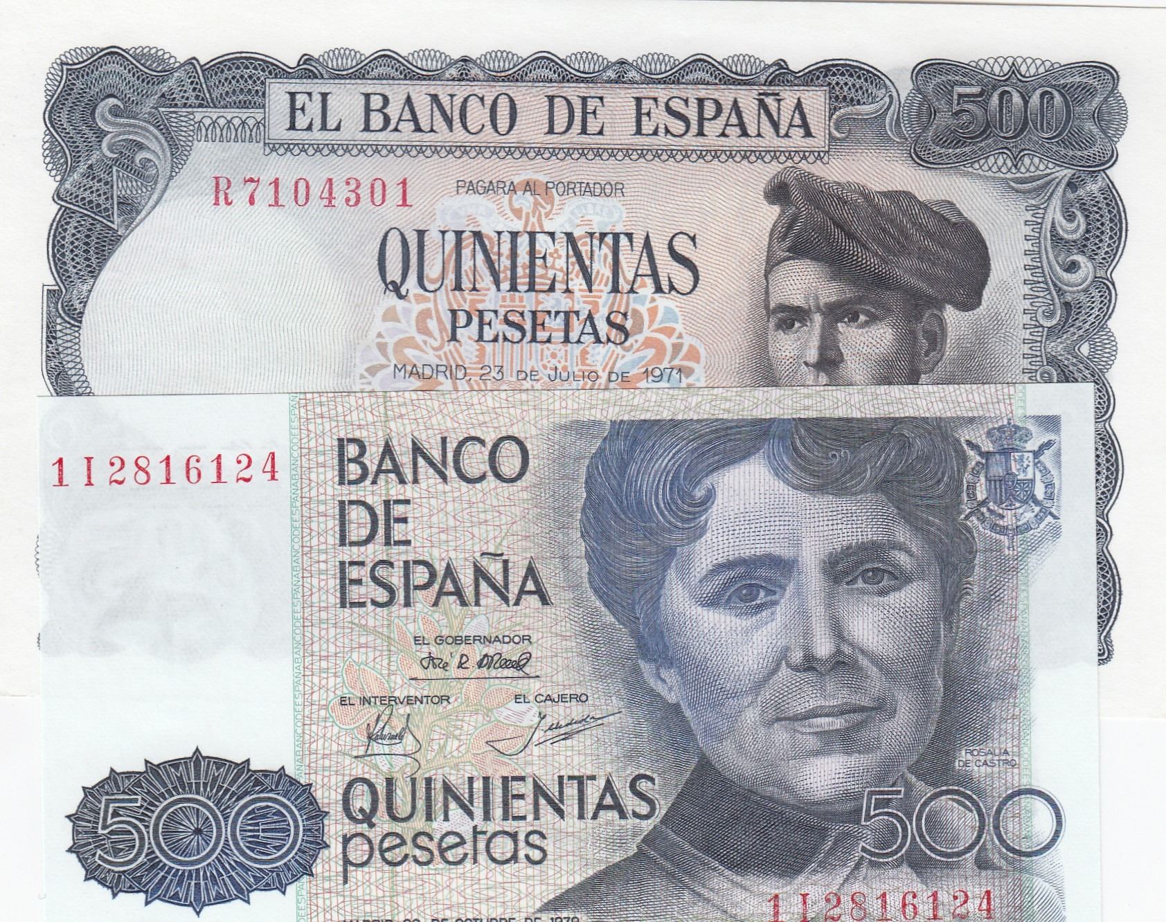 Spain, 500 Pesetas (2), 1971/1979, UNC, p153, p157, (Total 2 banknotes)br/serial numbers: R7104301 and 1I2816124