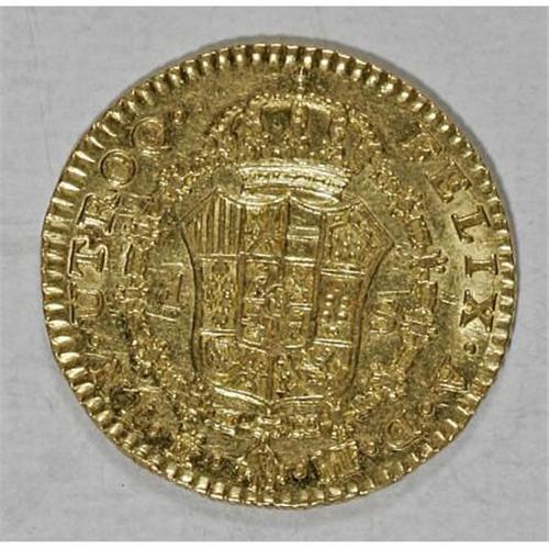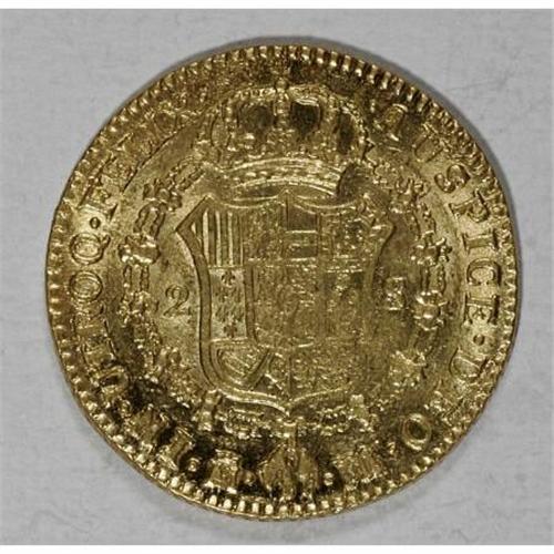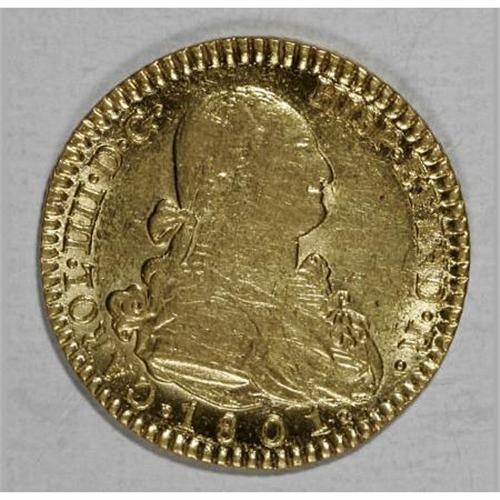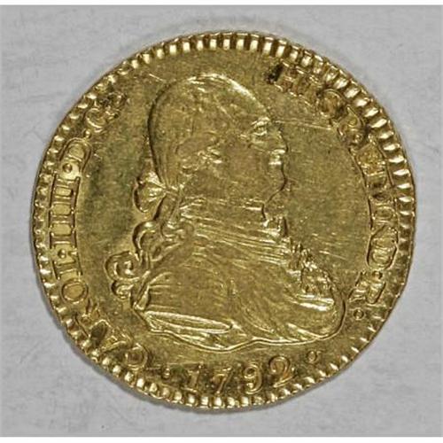 <B>Carlos IIII gold Escudo and 2 Escudos,</B></I> KM434 Escudo 1792M-MF, lustrous XF-AU, nice bold details, and KM435.1 2 Escudos 1801M-FA, AU with considerable mint luster, clearly FA/MF assayer. <B>Sold as is, no return lot.</B></I><BR><BR><b>Shipping:</b> Coins & Currency (<a target="_blank" href="http://www.heritageauctions.com/common/shipping.php">view shipping information</a>)