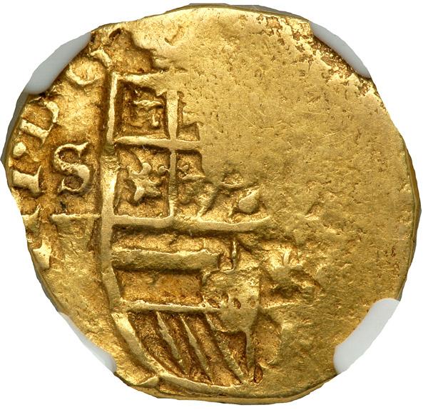Spain. Cob 2 Escudos, ND (Seville). Fr-169. Philip II, 1556-1598. Crowned arms. Reverse: Cross. NGC graded EF-40.