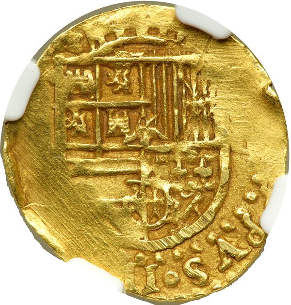 Spain. Escudo, ND (Seville). Fr-178. Philip II, 1556-1598. Crowned arms. Reverse: Cross. NGC graded EF-40.