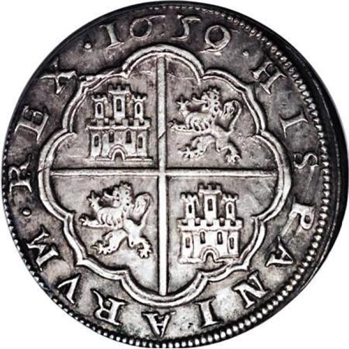 <B>Felipe IIII 8 Reales 1659/35 Segovia,</B></I> KM111, Cayon 6531, superb XF, extremely sharp features, rare and highly desirable in this superior grade.<BR><BR><b>Shipping:</b> Coins & Currency (<a target="_blank" href="http://www.heritageauctions.com/common/shipping.php">view shipping information</a>)