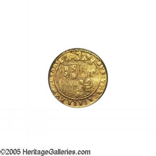 <B>Fernando and Isabel gold 2 Excelentes ND (1474-1504),</B></I> Seville mint, Fr-129, Cal-63a, MS60 PCGS. Some flatness on the highpoints.