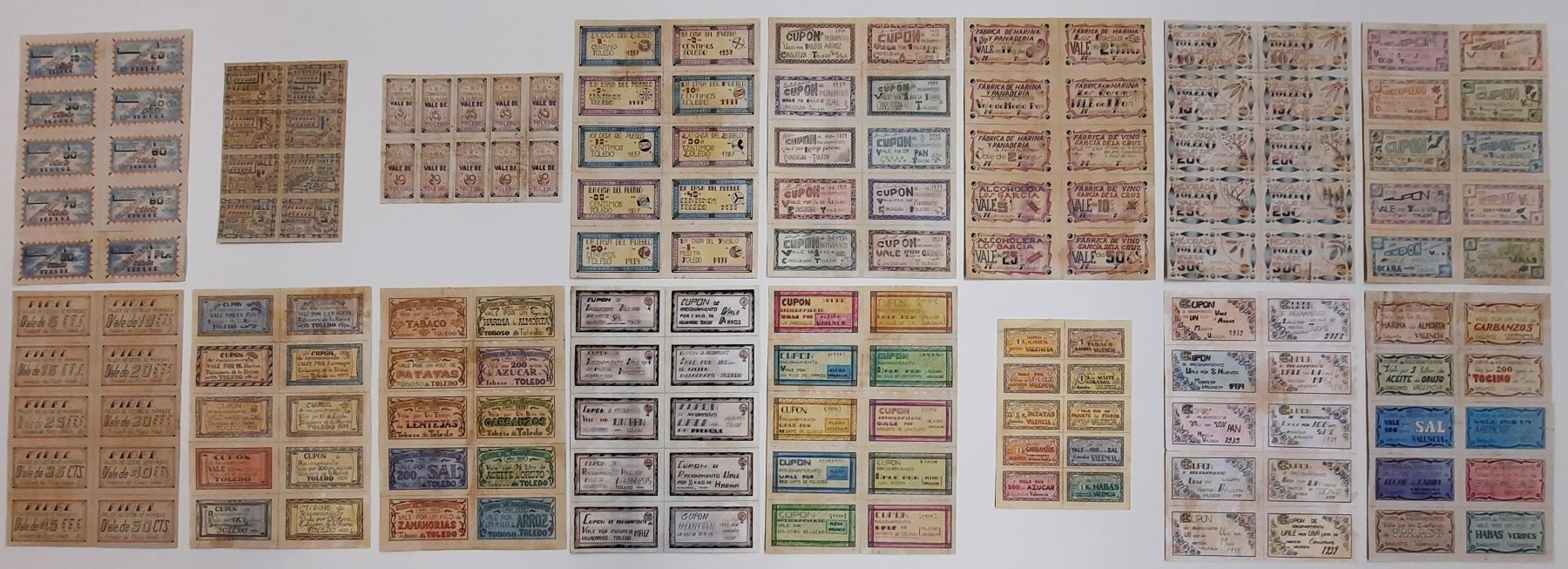 Spain Huge Collection - Lot with +110 sheets / +1100 Cupons - Mostly 1936 - 1939 - Spanish Civil War Coupons / Money - Part 2