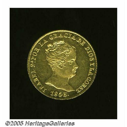 <B>Isabel 2nd gold 80 Reales 1845 B-PS,</B></I> KM578.1, Fr-324, lustrous UNC.