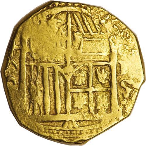 <B>Philip II gold cob 2 Escudos 1594 Seville Mint,</B></I> 594 of date visible, 6.70g, VF. Although not listed in Calico or Cayon, this appears to be an H assayer.<BR><BR><b>Shipping:</b> Coins & Currency (<a target="_blank" href="http://www.heritageauctions.com/common/shipping.php">view shipping information</a>)