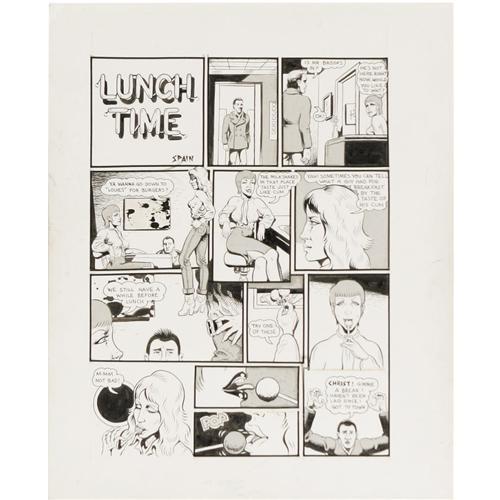 "<B>Spain Rodriguez - Complete 2-page Story ""Lunch Time"" Original Art (undated).</B></I> Two lovely office ladies give a visitor a lunch break he'll never forget, in this sexy Spain Rodriguez two-pager. Each page of has an image area measuring 10"" x 13.5"" and the condition is Very Good. <I>From the collection of Jesse Edwards/JES Archives.</B></I><BR><BR><b>Shipping:</b> Small Flat (<a target=""_blank"" href=""http://www.heritageauctions.com/common/shipping.php"">view shipping information</a>) "