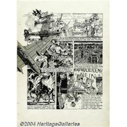 Spain Rodriguez - Original Art for Arcade #7, Complete 5-page Story, "Gotterdammerung" (Print Mint, 1977). Loosely translated, the title of this story means "Judgement Day." It is also the title of an opera by German composer Richard Wagner. The story takes place during the last days of the Third Reich, both above ground and down in the Fuhrer's Bunker. It follows the Soviet invasion and resulting suicides by Hitler and his men. Powerful and well drawn, this is Spain at his best! The five pages vary in size, but they are approximately 10.75" x 16.5" and in great condition. Important notice: Heritage usually auctions material at the rate of 200-250 lots per hour. On some occasions eBay Live bid software or the Internet may not be able to keep up with the pace of the auction. We recommend placing a realistic absentee bid now as insurance to avoid disappointment. Occasionally the auctioneer may eliminate or reject an eBay Live bid, and the auctioneer may also reopen a lot after the close of the eBay live bidding (usually because we missed an audience bid), and may reject your bid even if it shows you as the winning bidder. By bidding via eBay Live, you agree that Heritage may award the lot to another bidder at its sole discretion under the circumstances described above or any other reasonable circumstances. Since eBay bids are not shown to us until we open the lot on the floor, we treat those bids just like floor bids. In most cases the floor responds before the eBay bid is presented to us, due to Internet lag time, so for consistency we have made it a policy that floor bids are always considered first over tie eBay live bids. Also please note that all Heritage lots purchased through eBay Live carry a 20% Buyer's Premium. Please make sure you read the Terms and Conditions before you bid.
