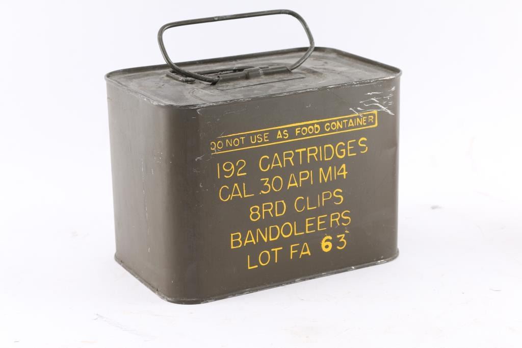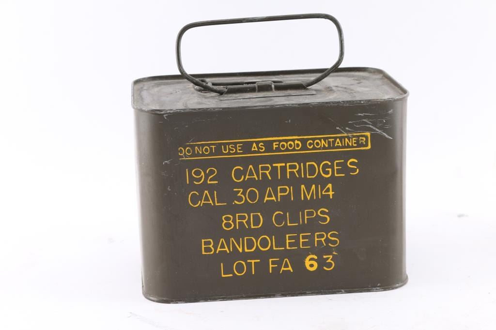 Unopened USGI "Spam Can" of 192 AP M2 .30-06 cartridges in 8 rd clips/Bandoleers.