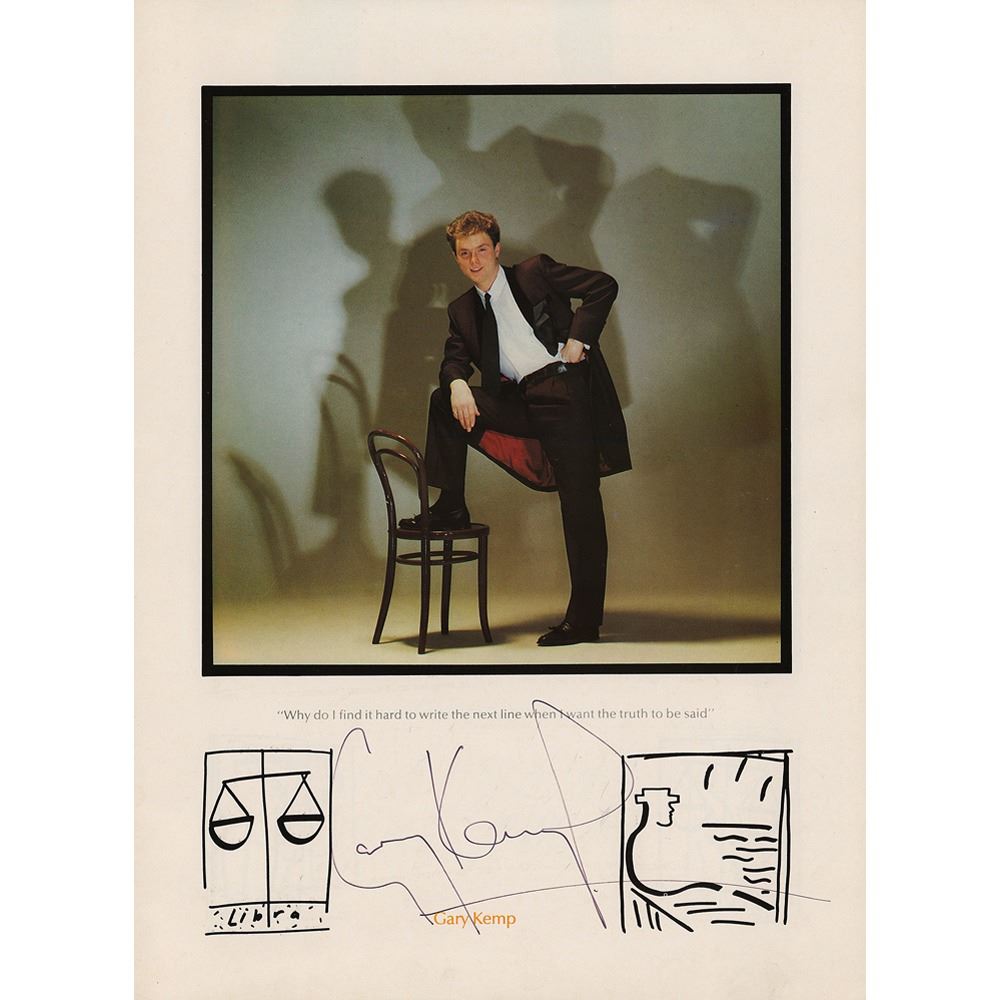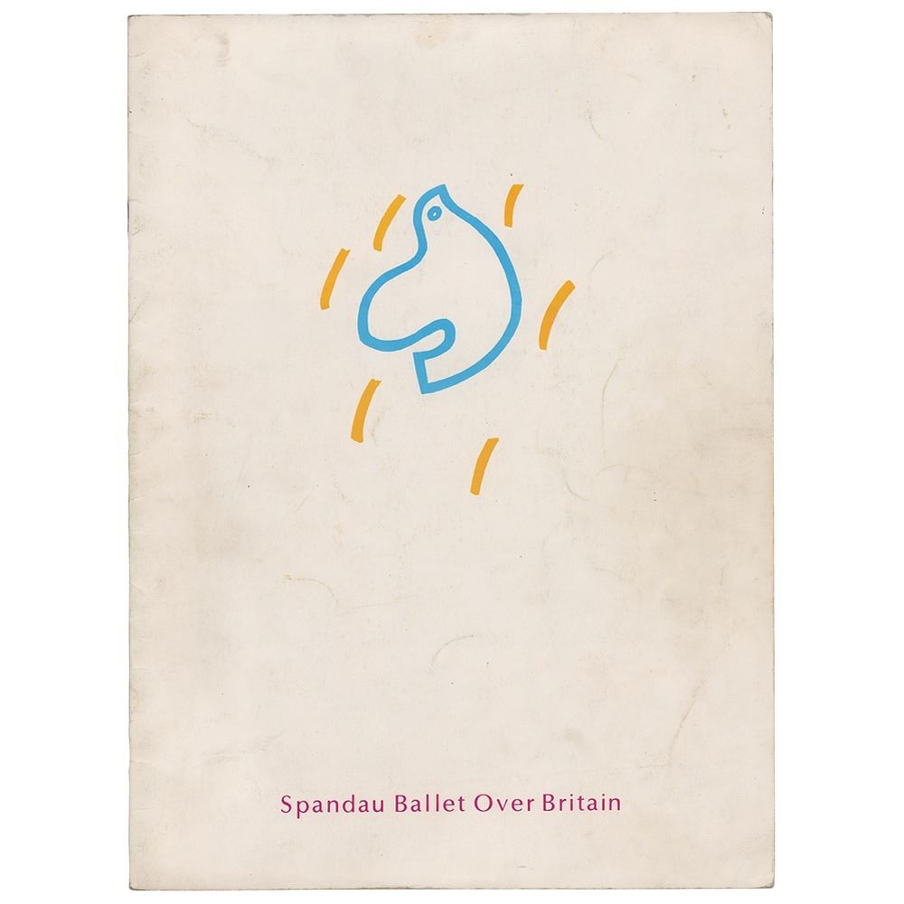 Original tour book for Spandau Ballet’s 1983 British Tour, 16 pages, 9.75 x 13, signed inside in ink or felt tip on their respective pages by Gary Kemp, Martin Kemp, Tony Hadley, John Keeble, and Steve Norman. In very good to fine condition, with handling wear to the program. Accompanied by a full ticket for a Spandau Ballet concert at the Wilshire Theater on November 23, 1983.