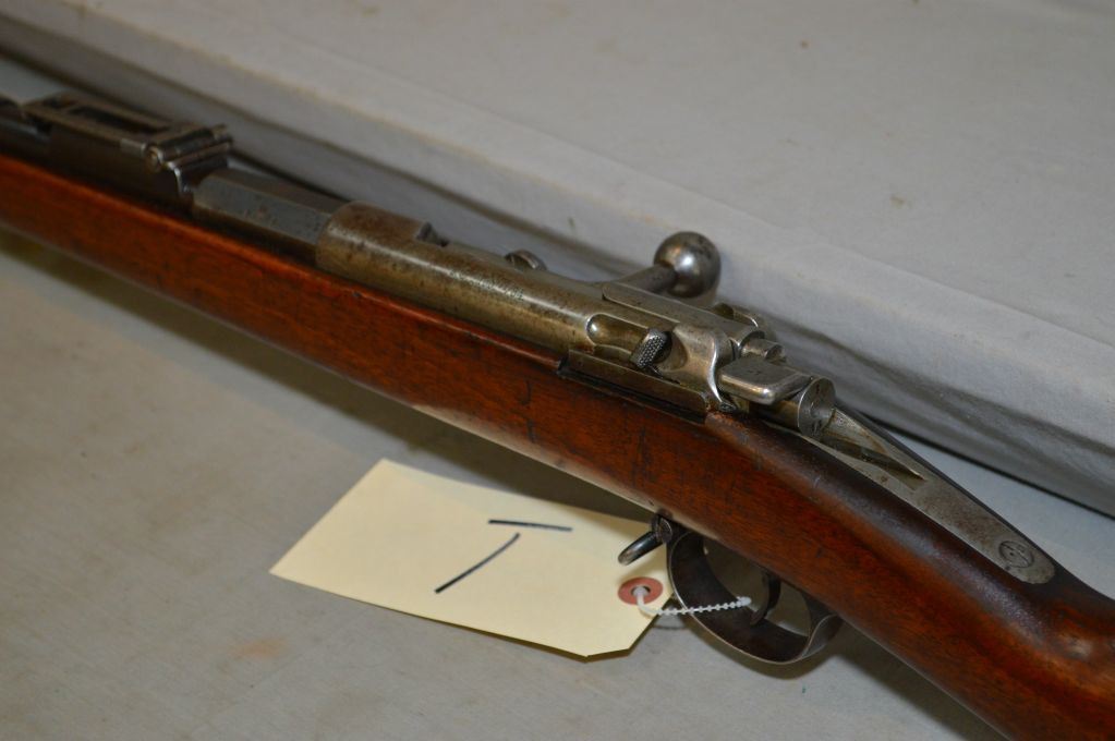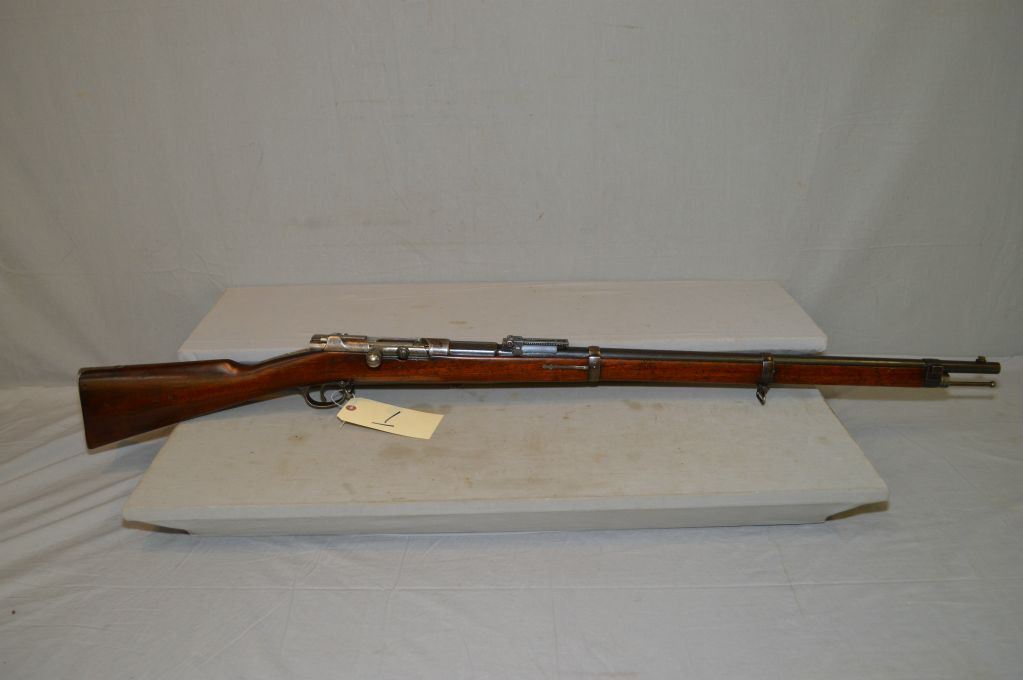 Spandau Mauser Dated 1887 Model 1871/84 .11 MM Mauser Cal Full Wood Military Rifle w/ 31 1/2" bbl [ fading blue finish, barrel sights, appears to be all matching numbers, good wood with nice cartouche proof marks, etc., sling swivels ] Ser # 2717