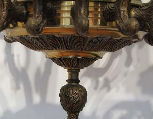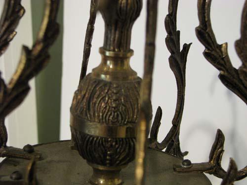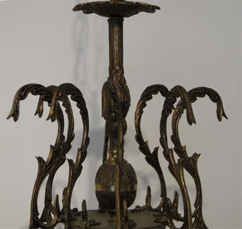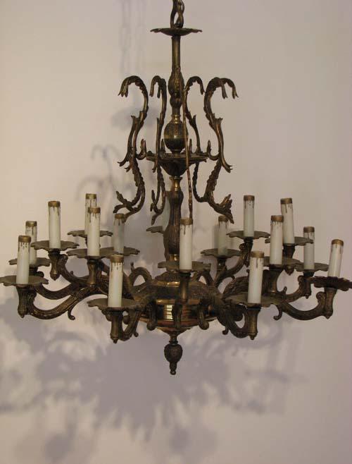 Title: Spanish 16 Arm Bronze Chandelier with Feather and Scroll Decoration