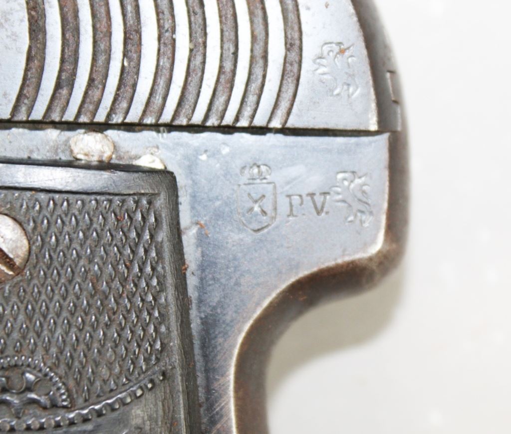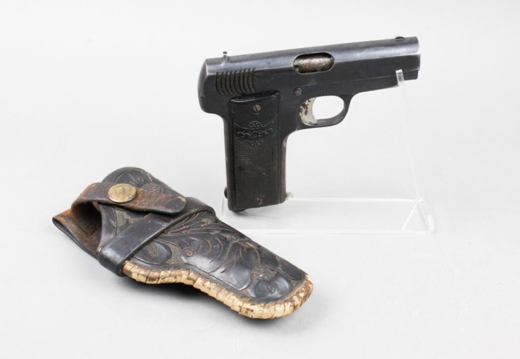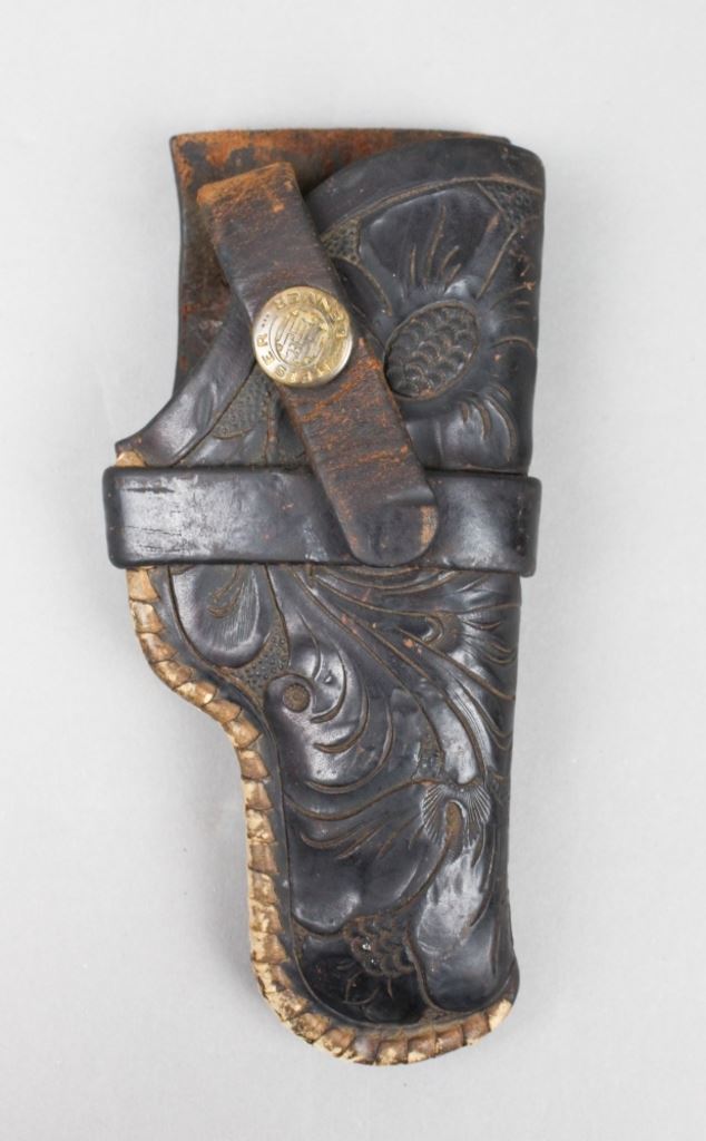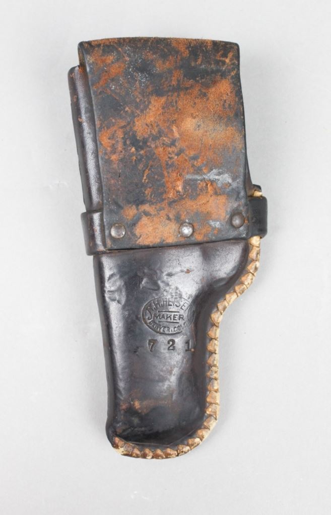 No maker mark. Fair condition. Bluing and grips well worn with rust spotting. Includes old Hyser holster. SN 12697