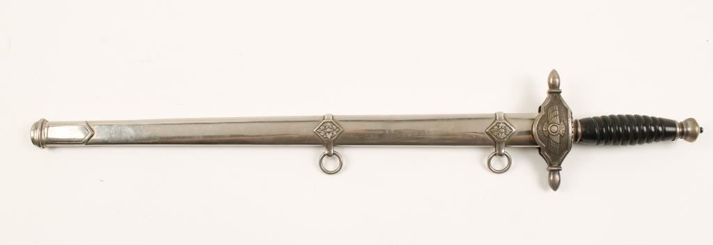 Marked "NF Toledo" on blade. High polished blade measures 14". Wire wrapped handle measures 20" overall.