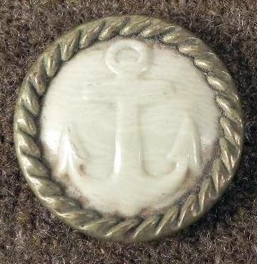 Spanish American War period button, in rare celluloid version * Obverse: White celluloid with anchor encircled by brass tone rope patternReverse: Base metal with some fabric Diameter: 23 mmCondition: Very good