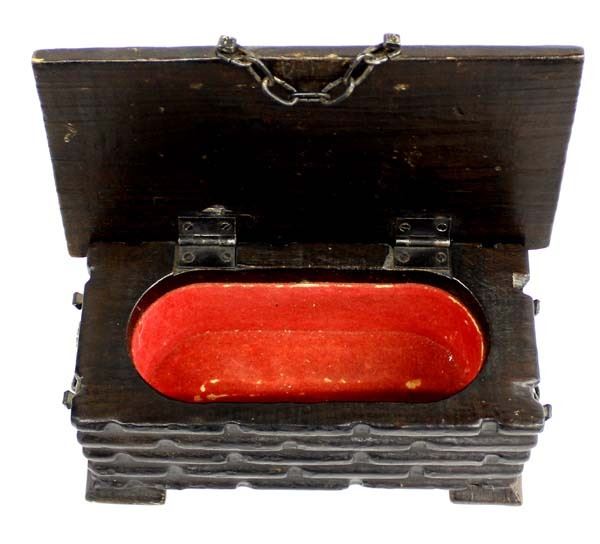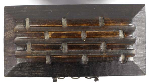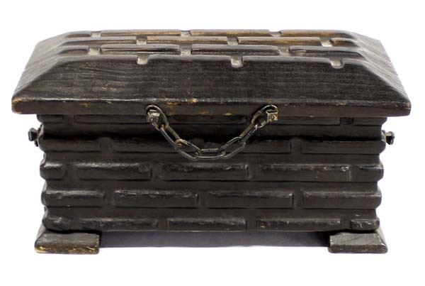 Spanish Carved Wood Lidded Trinket Box, measures 4'' x 9'' x 4.5'', has original tag on the bottom