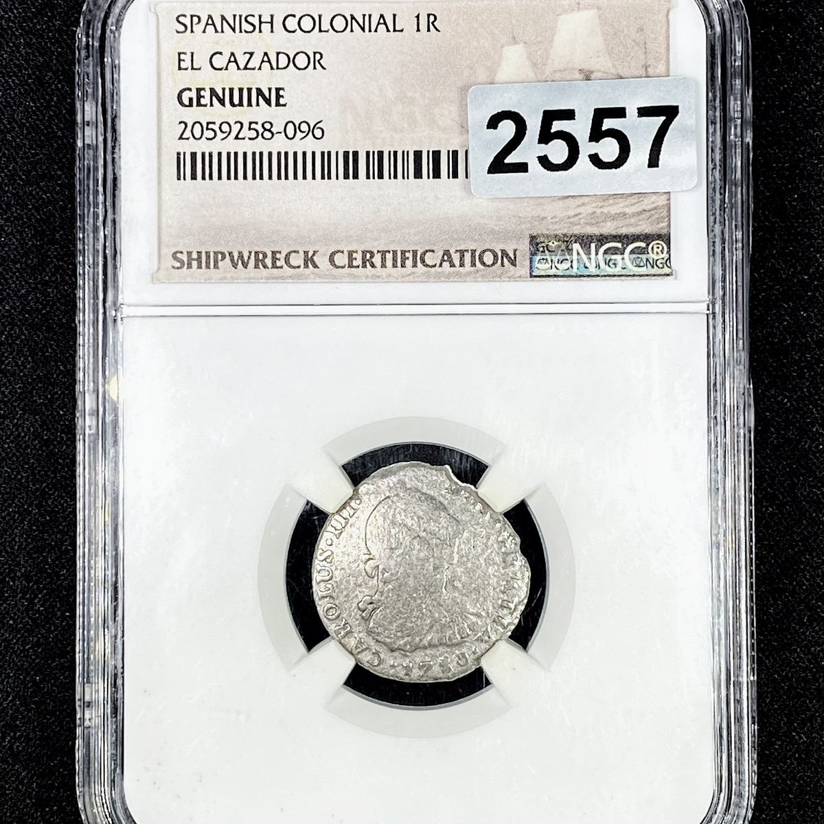 Spanish Colonial 1 Reales El Cazador NGC - Genuin