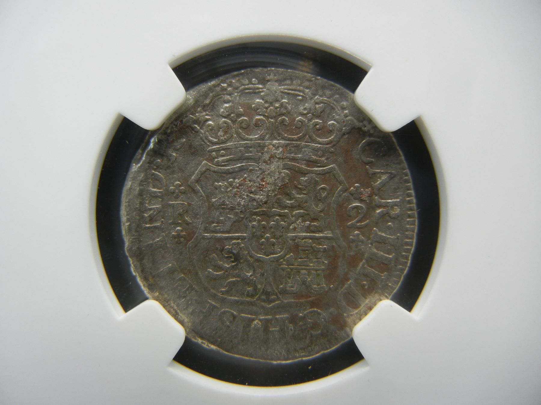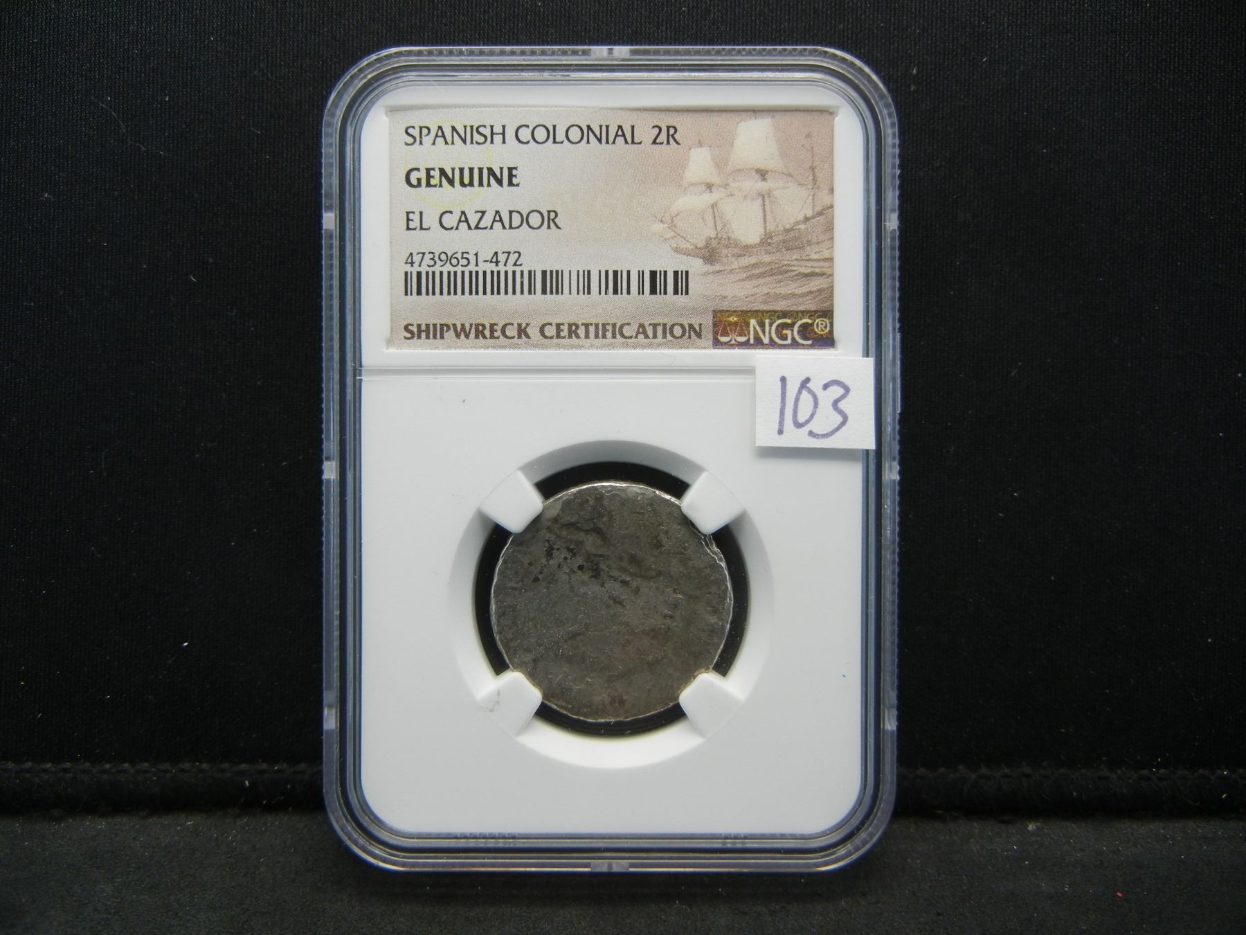 Spanish Colonial 2 Reale El Cazador Shipwreck NGC Genuine
