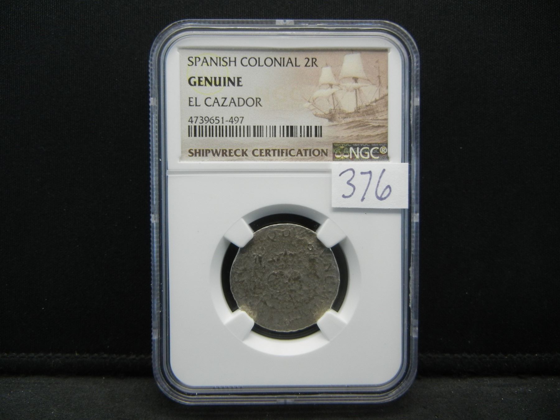 Spanish Colonial 2Reale El Cazador Shipwreck NGC Genuine
