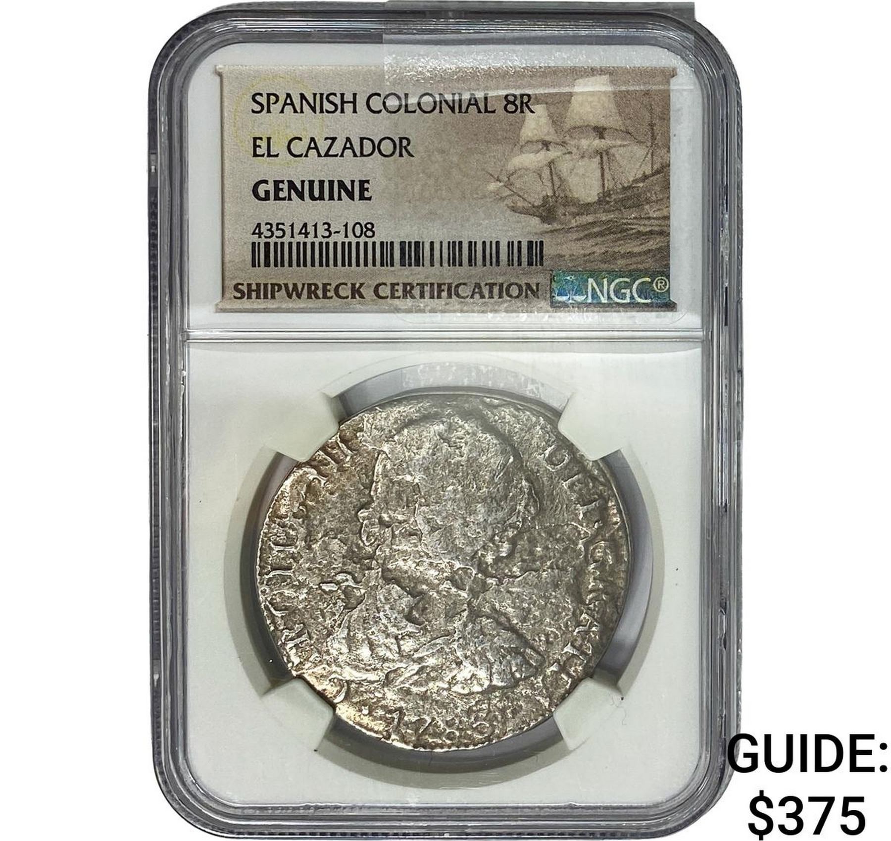 Spanish Colonial 8R El Cazador NGC Genuine Shipwreck
