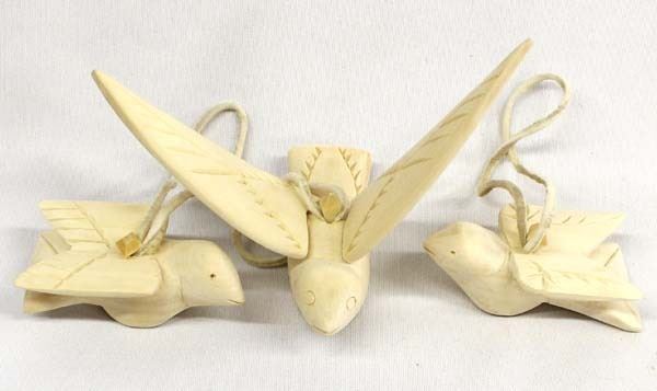 Spanish Colonial Carved Aspen Wood Birds by George Lopez (1900-1993) of Cordova, New Mexico, largest measures 5'' x 3.5'' x 3.25'', signed, FYI: ''George L¢pez was born on April 23, 1900, in the village of Cordova, situated in a small valley of the Sangre de Christo mountain range north of Santa Fe, New Mexico. Cordova, one of the early Spanish settlements dating from the sixteenth century.''
