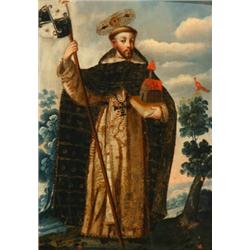Spanish Colonial School, 19th Century, St. Dominic Holding Up the Lateran Church, Unsigned...