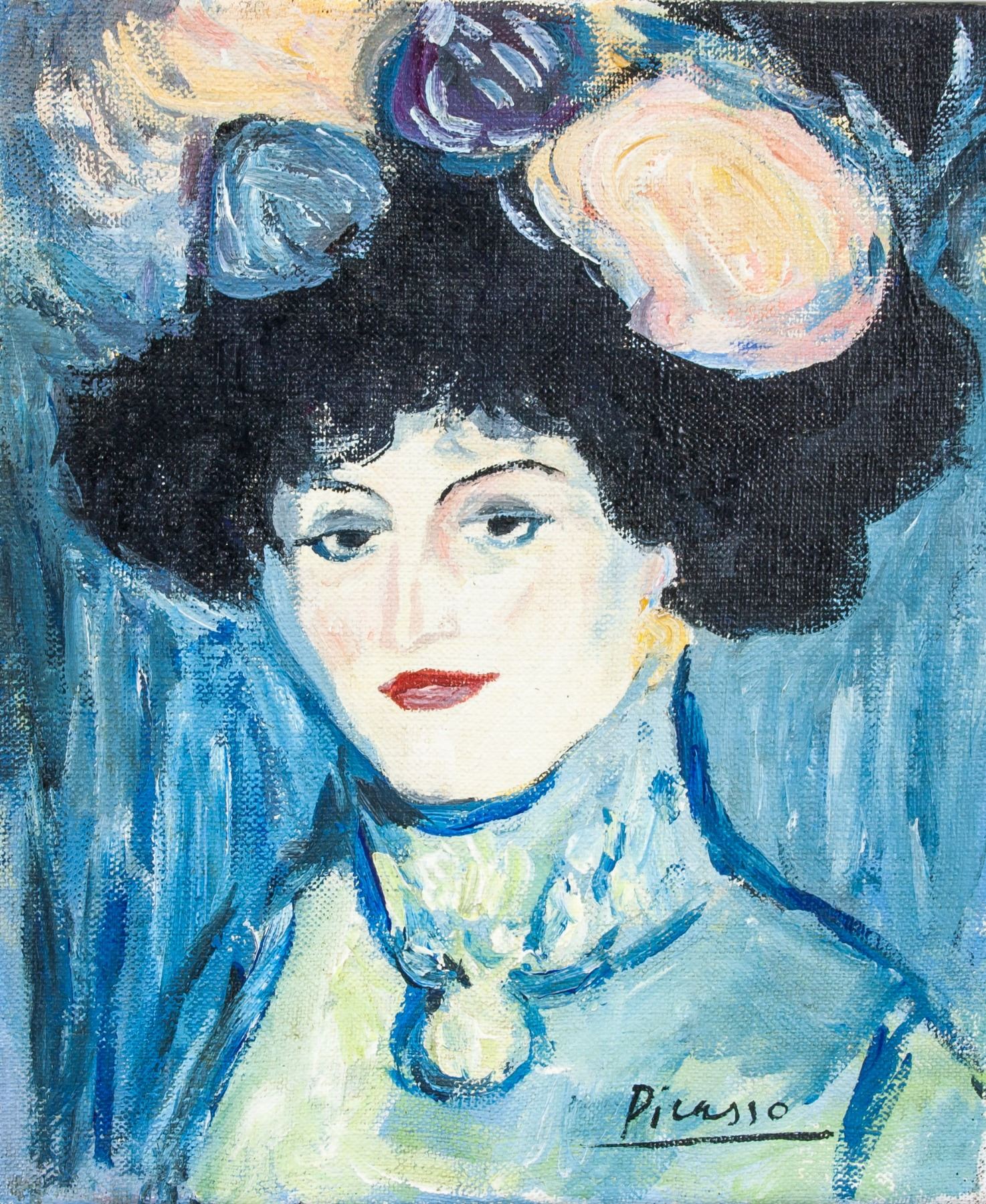 Oil on canvas, featuring a portrait of a lady. Signed Picasso, possible signature of Pablo Picasso on the lower right bottom. 11.8 x 8.1 in. (30 x 20.5 cm). PROVENANCE: Private Collection (Chicago, IL).
