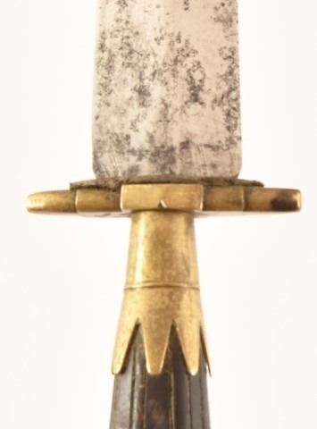Faint scrollwork on blade below quillion. Circa 1840 Spain. Blade length 7.25", overall length 11.25"