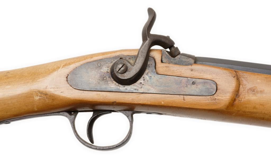 Spanish E.I.G percussion modern copy of a full stock plains type rifle, 9mm caliber, S/N 84089; overall good condition. Est.: $100-$200.
