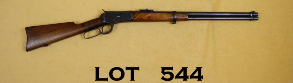 Spanish “El Tigre” lever action carbine (similar to the Winchester Model 1892), .44 cal., 22” barrel, blue finish, wood stocks, #A25697. This gun is in overall good condition showing approx. 85% original blue finish with some scattered erosion and spots of pitting; good bore, crisp action and good markings; wood is good overall with some mars and scratches from carry and storage; sling swivels present. Est.: $600-$1,200.