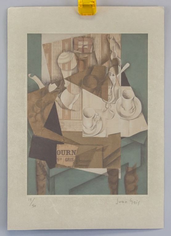 Etching on paper. Featuring cubist-style composition. Signed "Juan Gris" to the bottom right. "15/50" inscribed to bottom left. 30 x 21 cm (11.7 x 8.3 inch).