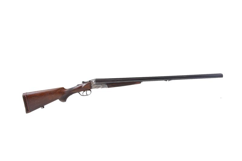Spanish Guild SxS Shotgun 12 ga SN:115286 Double barrel field grade shotgun made in Spain by Sarasqueta in Eibar and labeled the "Amazon". Blued barrels, case colored receiver with internal hammers, checkered wood pistol grip stock, rubber butt pad, chDouble barrel field grade shotgun made in Spain by Sarasqueta in Eibar and labeled the "Amazon". Blued barrels, case colored receiver with internal hammers, checkered wood pistol grip stock, rubber butt pad, checkered forearm. Receiver shows double lugs with Greener cross bolt, extractors, double triggers, sling swivels, 27 1/2" barrels with good bores and working actions. Condition: Good with some use. Stock looks to be original with added butt pad. Receiver looksstripped as very little of the case color is left only under the controls but it does show some engraving.