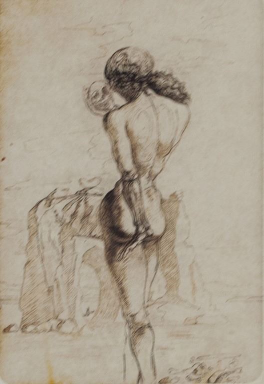 Lithograph on paper. Featuring a woman with her back to the viewer holding up a skull. Signed "Dali" to the bottom right. "E.A" inscribed to the bottom left. Plate size: 15 x 10 cm (6 x 4 inches). Sheet size: 30 x 21.5 cm (11.75 x 8.25 inches). Provenance: This lot carries limited provenance from a Southern Ontario estate
