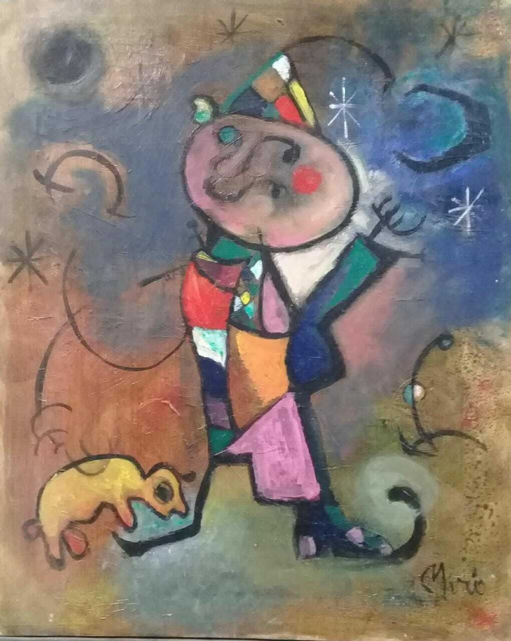 Spanish Master Joan Miró: Oil canvas painting "manner of" Signed - RARE