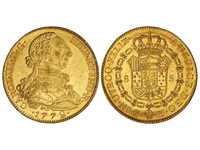 Spanish Monarchy: Charles Iii - 8 Escudos. 1772. MADRID. P.J. Brillo original. (Rayitas de ajuste en anverso). RARA. Cal-51; XC-720. SC-/SC.